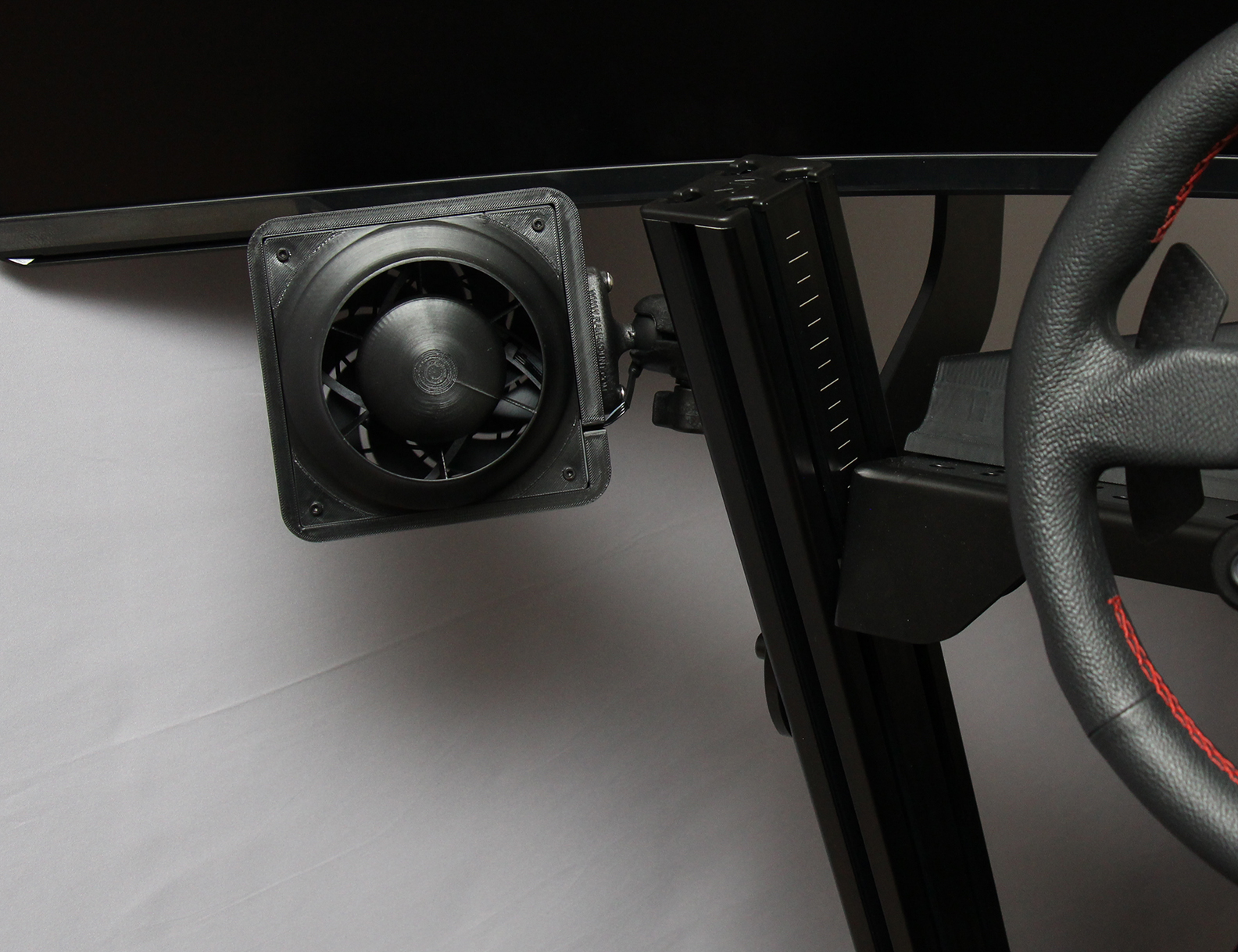 Our Premium Simulator comes with everything you may need to tackle sim racing and additional feedback/detail to bring you the best experience possible. The additional haptic feedback present under the seat and on the pedals greatly helps bridge the gap between real racing and simulated racing. The wind sim provides additional sense of speed while also providing invaluable driver cooling for enhanced comfort and focus while racing.